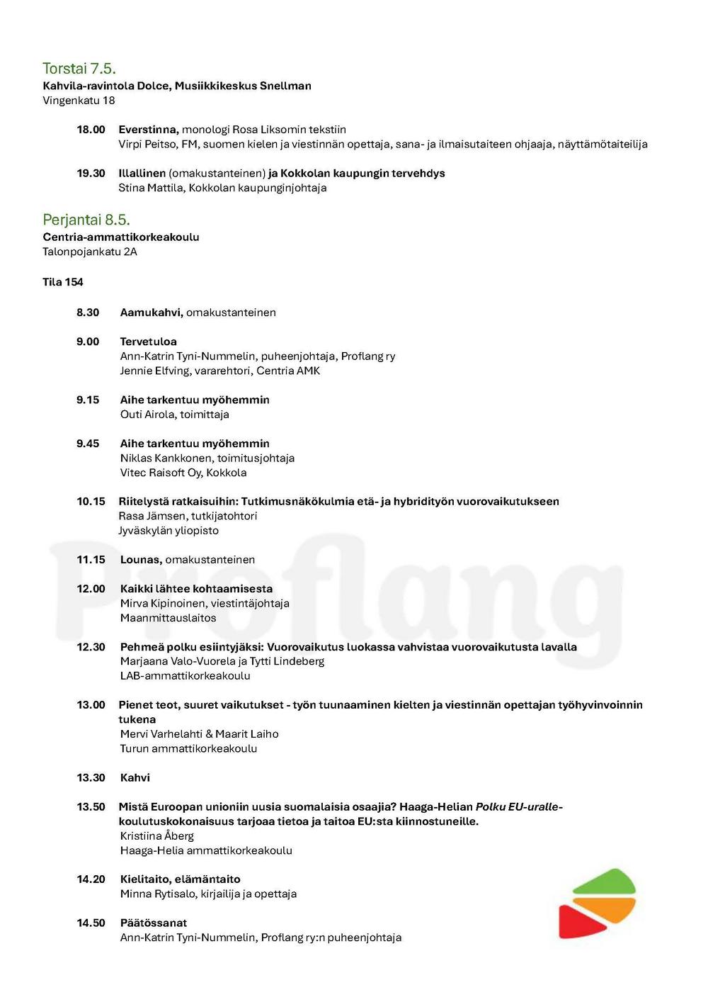Osallistumismaksu: Proflangin jäsenet 100 €, muut kuin jäsenet 150 €.